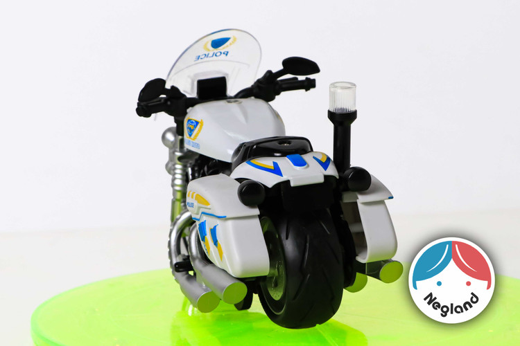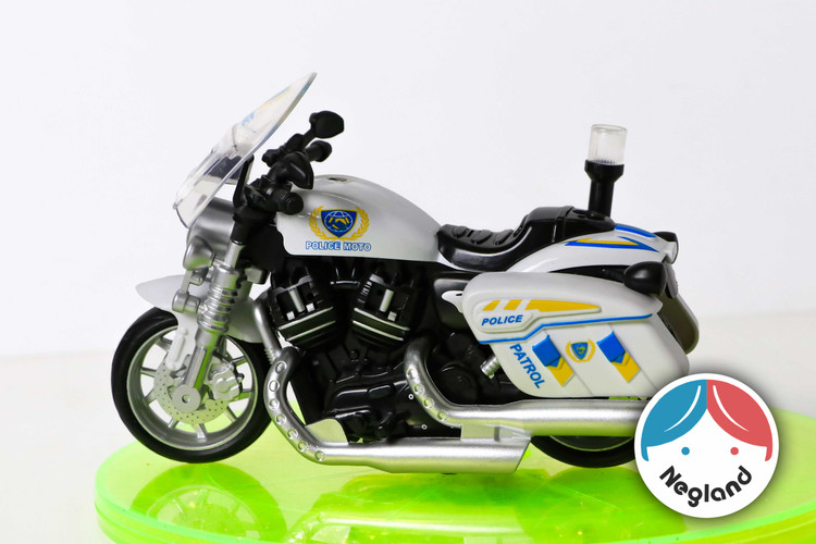 موتور عقب کش پلیس که با دکمه زیر موتور می توان چراغ های موتور و آجیر گردان عقبش رو روشن کرد و با دکمه دوم می توان روی حالت نمیه فعال قرار داد و با کشیدن به روی عقب هم شروع به موزیک پخش کردن می کنه و هم چراغ هایش شروع به کار می کند